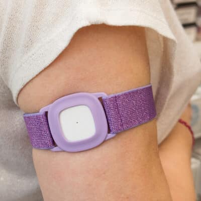 Brassard de maintien pour capteur Medtronic Simplera Sync My Lovely Bird Lilas paillettes